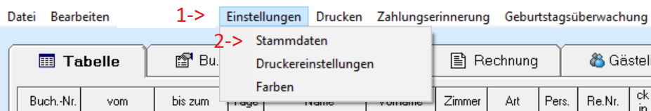 Öffnen Sie das Menü "Einstellungen" und klicken Sie darin auf "Stammdaten"